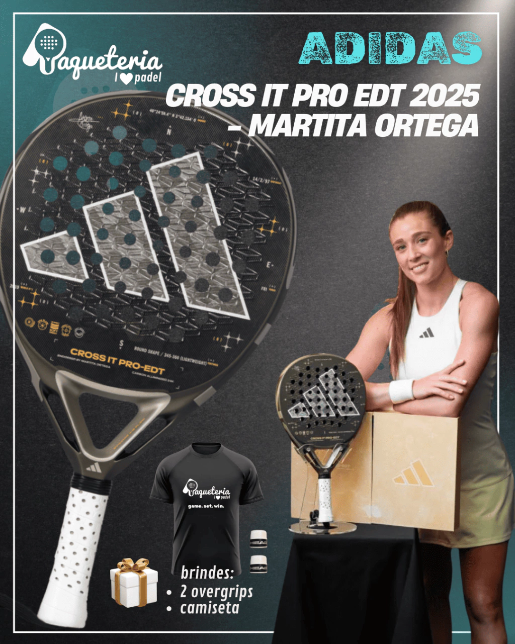 A Cross It Pro Edt 2025 é o resultado de uma colaboração única com Martita Ortega, jogadora que representa a nova geração do padel: precisa, ousada e brilhante taticamente.