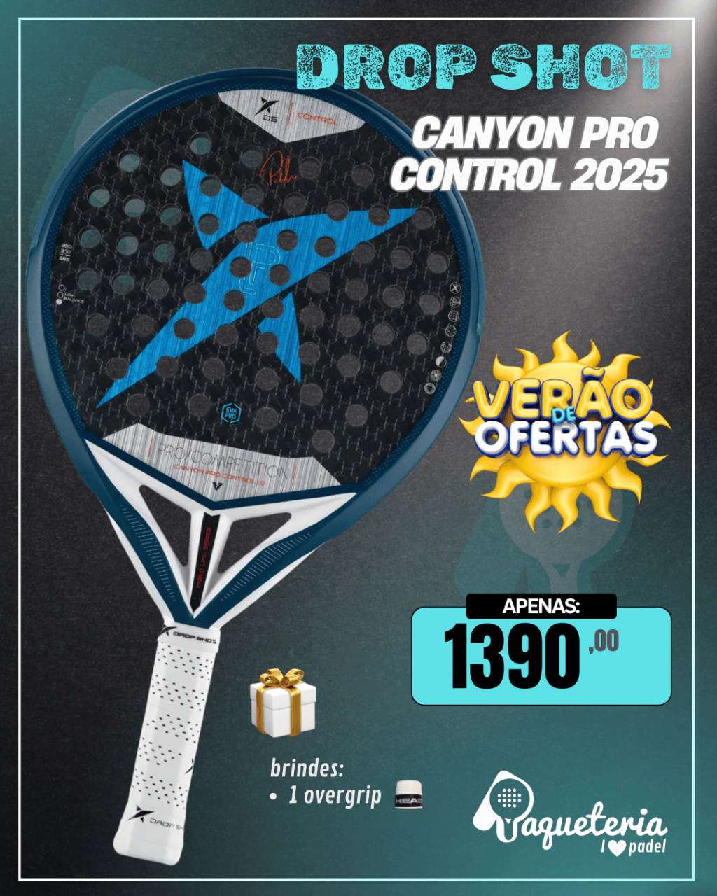 Na Drop Shot, sabemos que os jogadores precisam de equipamentos à altura do seu talento. Por isso, desenvolvemos a Canyon Pro Control 1.0 (Lima Series), uma combinação perfeita de potência, controle e conforto, garantindo golpes precisos e sensação de jogo incomparável.