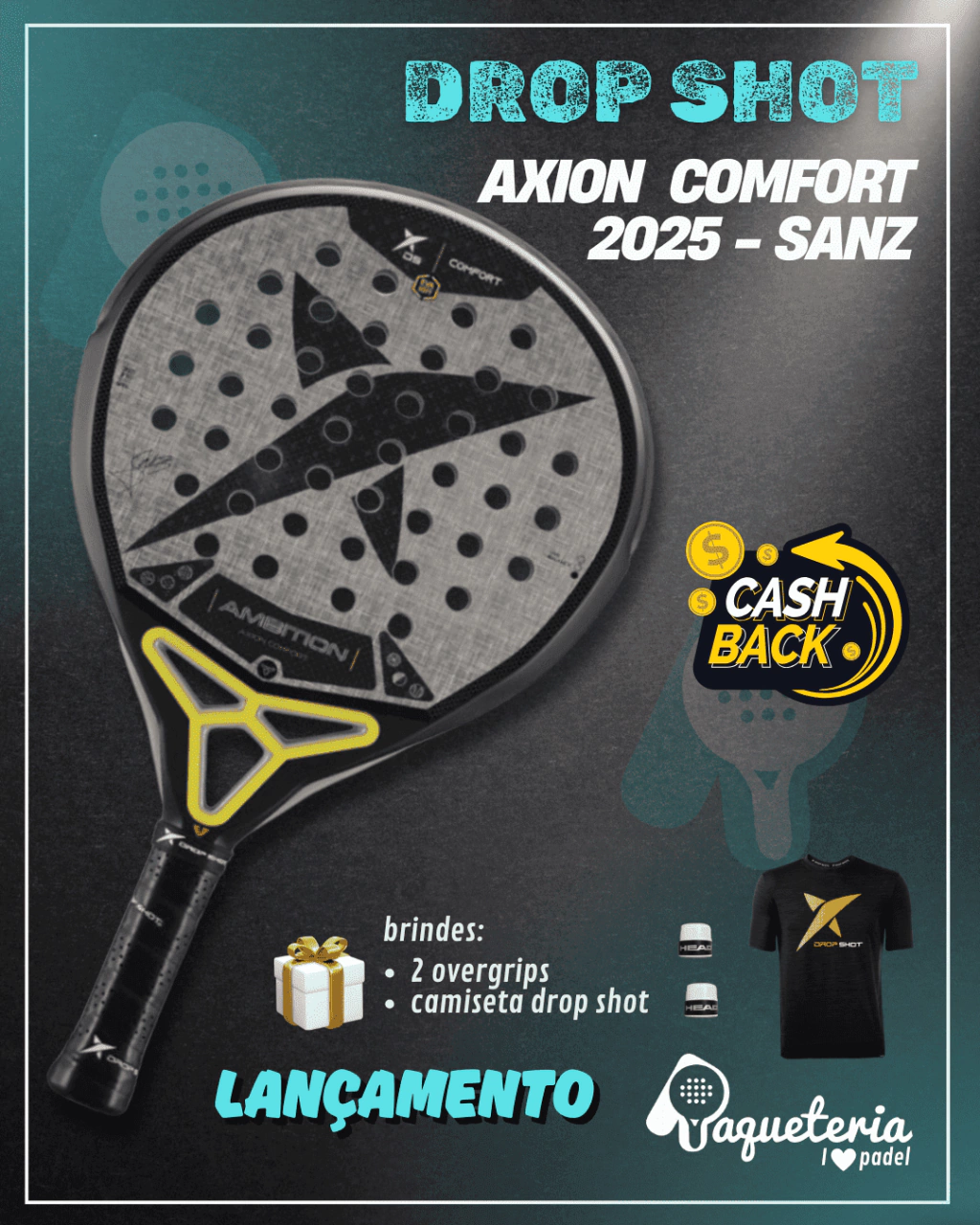 A DROP SHOT está sempre inovando no mundo do Padel, desenvolvendo equipamentos que unem tecnologia de ponta e materiais de alta qualidade. A Raquete de Padel DROP SHOT Axion Comfort faz parte da Série Axion, inspirada no modelo do atleta profissional Jon Sanz, oferecendo um equilíbrio perfeito entre controle e potência para jogadores que buscam evolução no esporte.